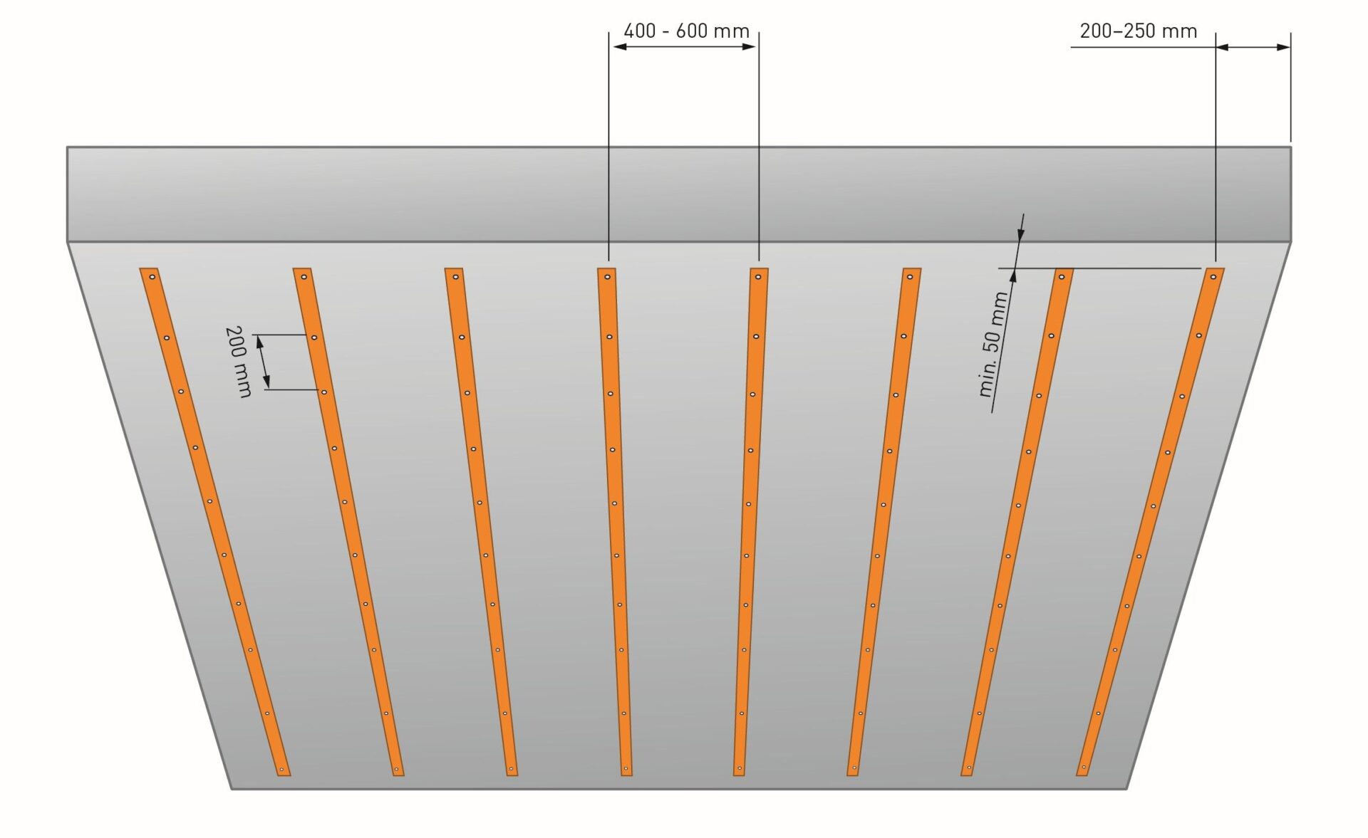 Vékony tartószerkezet a VarioSíneknek köszönhetően. A felületek – ahova az EasyFlexDecke mennyezethűtés/-fűtés kerül – legyenek simák és szárazak.