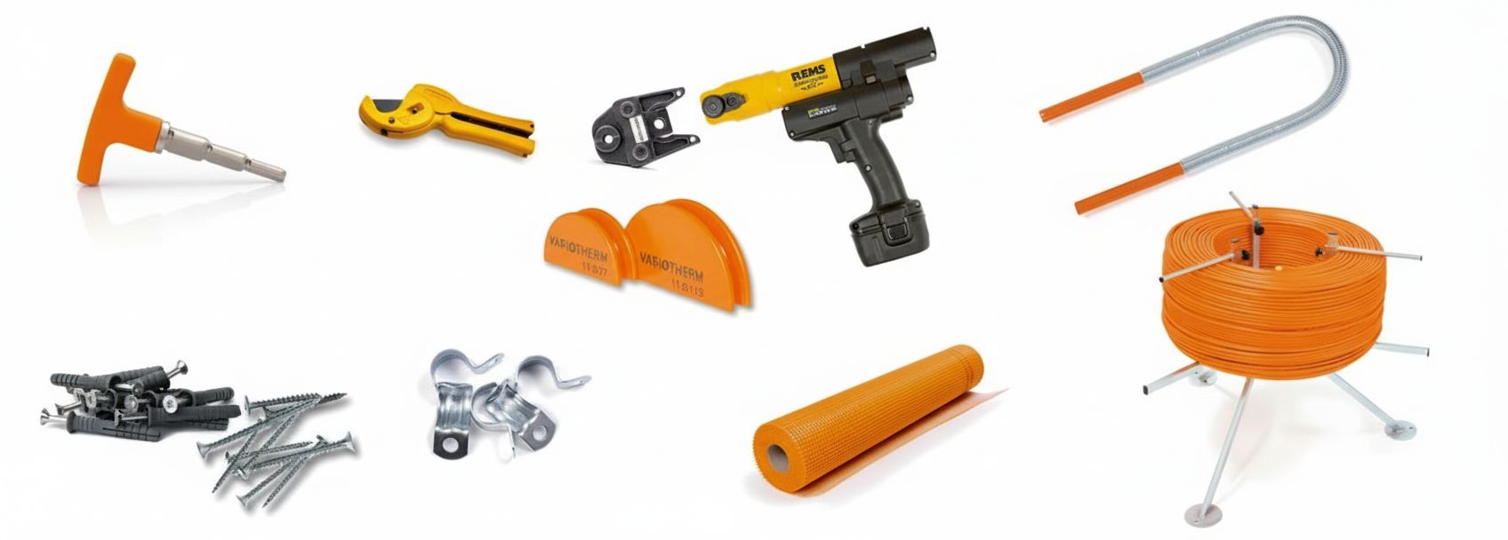 Tégla, pórusbeton vagy beton – A VarioSíneket pillanatok alatt felcsavarozzuk a mennyezetre. A könnyen hajlítható, mégis alaktartó VarioProFil csöveink egyszerűen bepattinthatók a sínbe – gyors, tiszta, profi munka. A profilozott felületű Variotherm cső pedig optimális hőátadást biztosít.