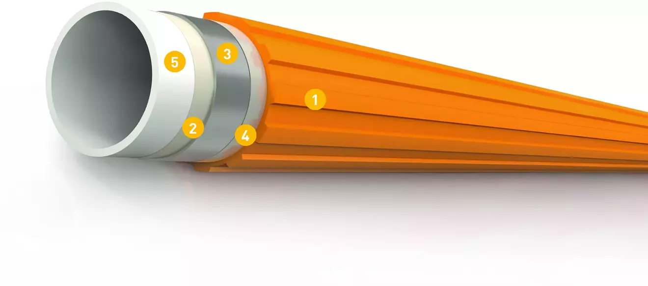 A belső réteg hőálló polietilénből készül, tükörsima felülete megakadályozza a lerakódásokat, így a víz akadálytalanul, minimális nyomásveszteség mellett áramlik át rajta.